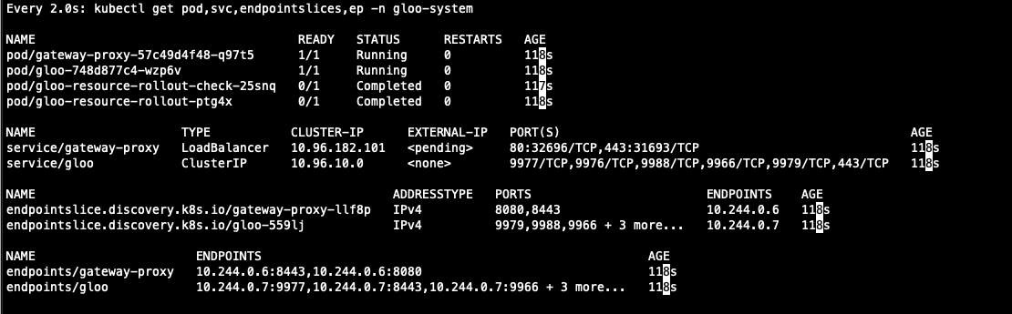 $ kubectl get pod,svc,endpointslices -n gloo-system
